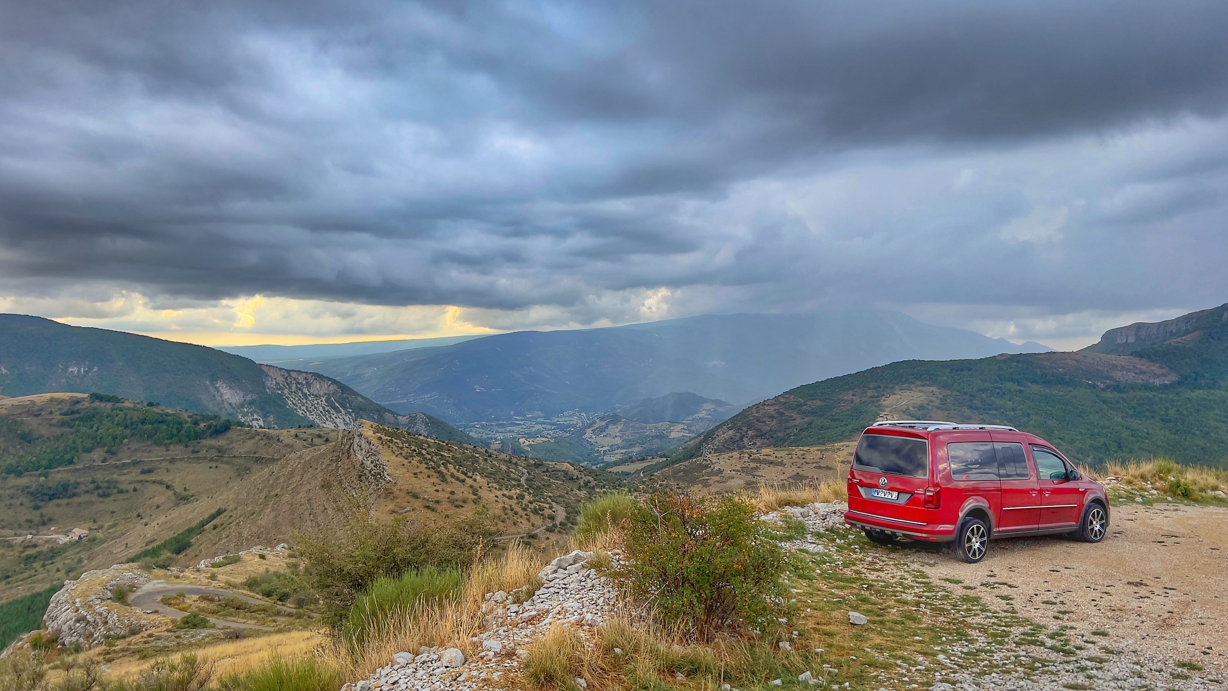 Superbe vue panoramique. Par contre, la route est étroite. Il faut savoir bien faire marche arrière dans le col. Nous avons du même reculer sur une distance significative alors que la voiture française en face était plus près de la possibilité de croisement.